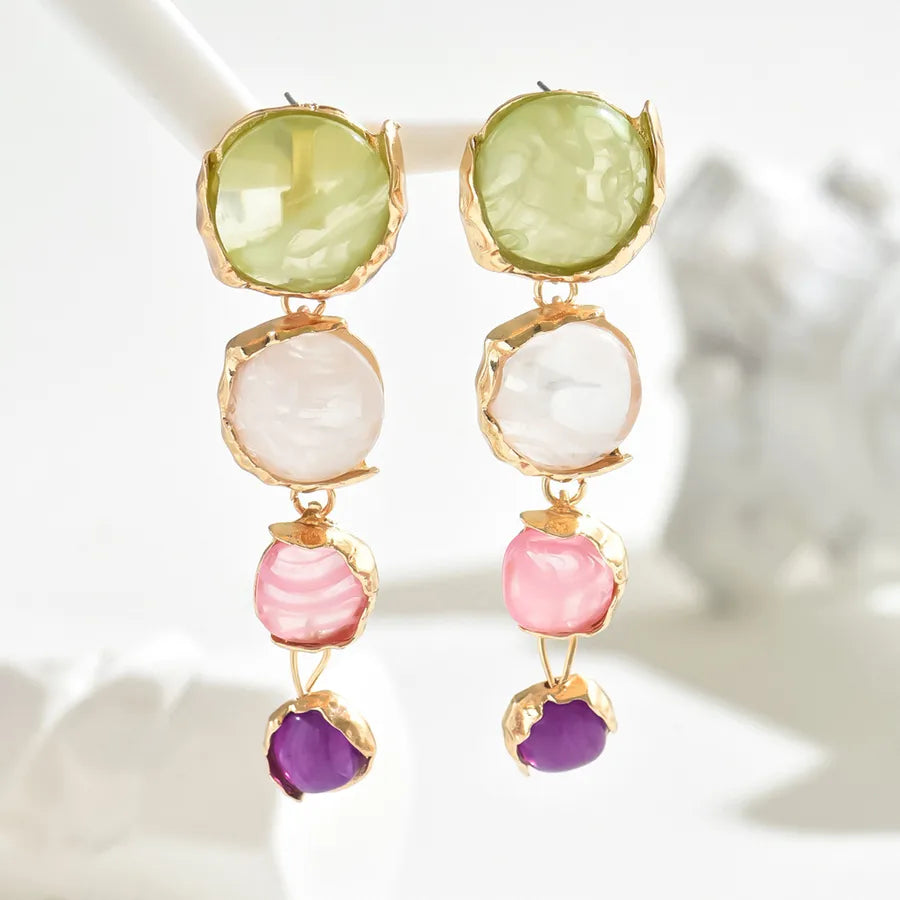 Simple Geometric Round Earrings Women's Versatile Small Gemstone Embedded High-End Design Ear Studs and Dangle Earrings